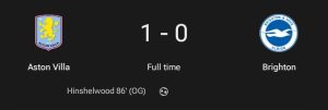 The result keeps Aston Villa strong at home while Brighton must regroup for their next Premier League fixture, taking lessons from what Hürzeler described as a punishing visit to one of England’s most intimidating and toxic grounds.