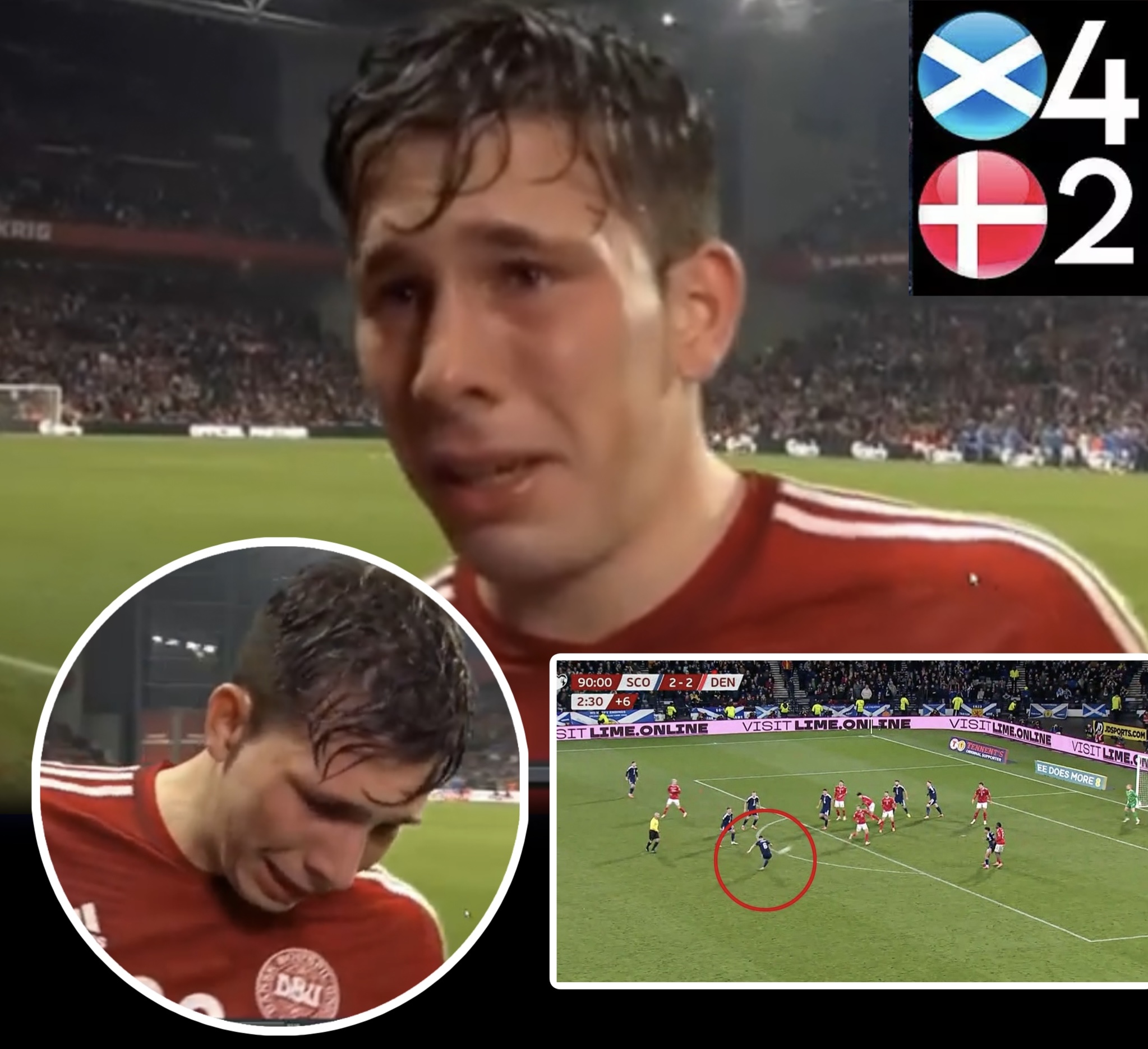 While Scotland celebrated, Denmark’s captain Pierre Emile Hojbjerg delivered a raw, emotional interview that stunned fans across social media. Visibly shaken by the defeat, he struggled to contain his tears as he spoke about the sense of injustice his team felt during the chaotic final minutes.