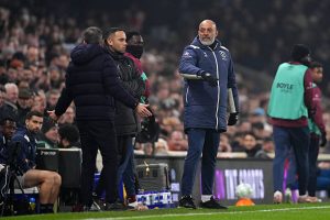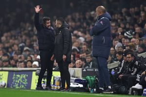 West Ham United manager Nuno Espirito Santo reacts to Fulham manager Marco Silva (left) on the touchline during the Premier League match at Craven Cottage, London. Picture date: Wednesday March 4 2026. (Photo by John Walton/PA Images via Getty Images)