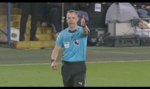 Attwell then overturned the decision and announced to the crowd “After review, Leeds 4 deliberately handles the ball in the penalty area. My final decision is penalty kick.”